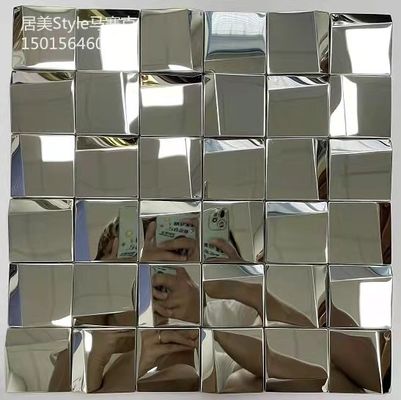 กระจกเงินสี่เหลี่ยมขนาดเล็ก กระจกเหล็กไร้เหล็ก กระเบื้องโมไซค์สําหรับตกแต่งผนัง