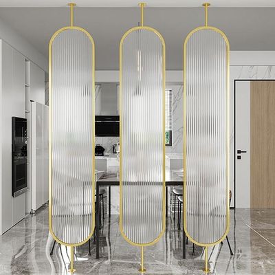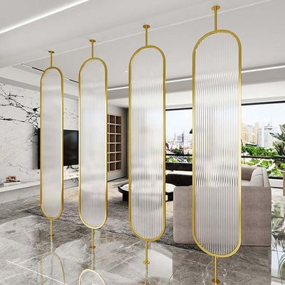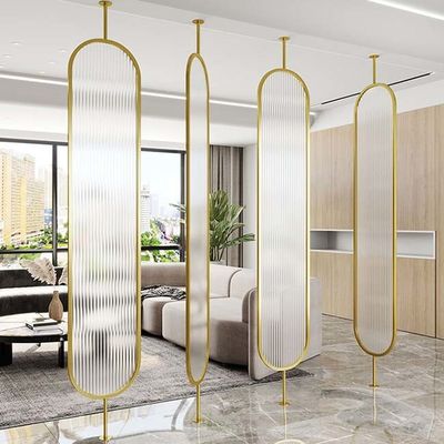 ฉากกั้นห้องสเตนเลสสตีลสีทองรูปไข่พร้อม Moru Glass