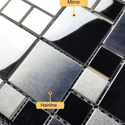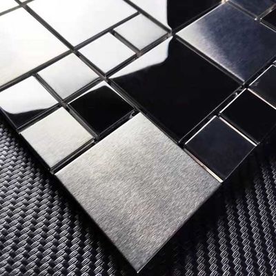 กระเบื้องโมเสคสแตนเลสสีเทาสี่เหลี่ยมสีดำสีเทาสำหรับตกแต่งผนัง