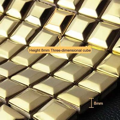 กระเบื้องโมเสกสแตนเลสสีทองลูกบาศก์ขนาดเล็กสำหรับตกแต่งผนัง