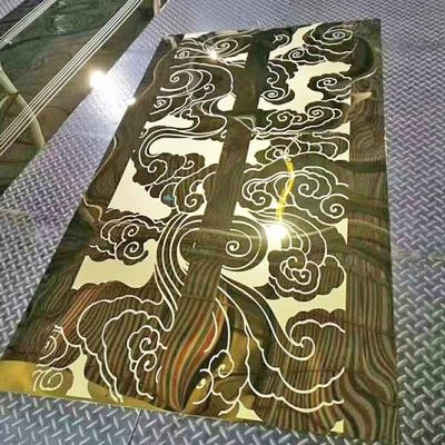กระจกถักตามสั่ง 8K สีทอง ใบเหล็กไร้สแตนเลสสําหรับลิฟท์