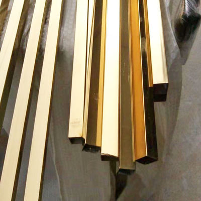 เกรด 201 304 316L สีทองสแตนเลสท่อสี่เหลี่ยม Inox PVD ชุบ Titanium