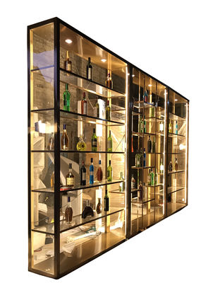 304 OED คุณภาพดี ขนาดตามสั่ง สีร้านไวน์ เฟอร์นิเจอร์ กล่องไวน์สูง พร้อม LED โรงแรมวิลล่า