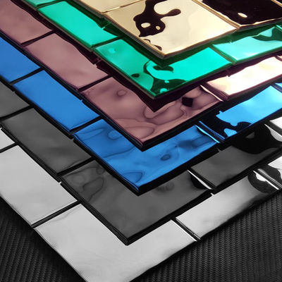 สีทอง รูปทรงสแตนเลส โมไซค์ไทล์สําหรับตกแต่งผนัง
