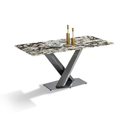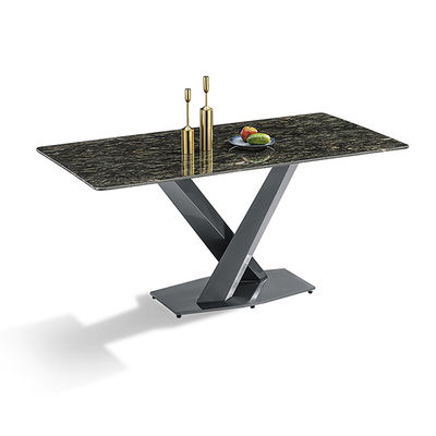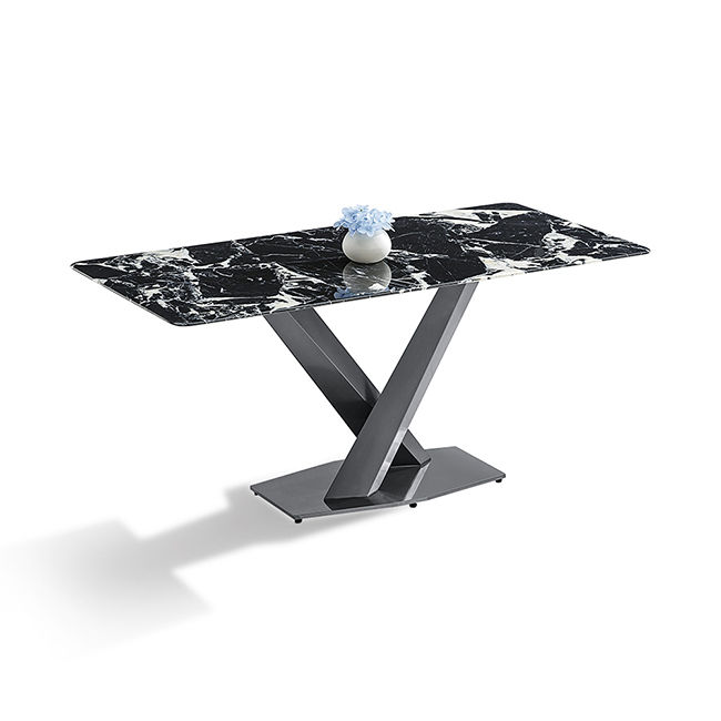 โต๊ะรับประทานอาหารหินซินเตอร์โมเดิร์น สีดํา ไทเทเนียม สแตนเลส