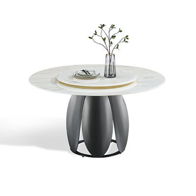 โต๊ะอาหารสแตนเลสสตีลสุดหรูพร้อมท็อปหินเทียมหมุนได้