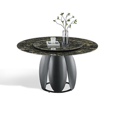 โต๊ะอาหารสแตนเลสสตีลสีดำหินเผารูปทรงกลมทันสมัย