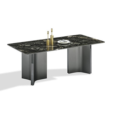 โต๊ะอาหารสแตนเลสสตีลสีดำเคลือบ PVD ฐานสแตนเลสสตีลกระจกเงา